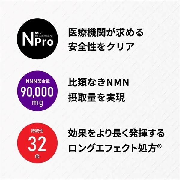 NMN総量 90,000mg(30本入り/30日を目安にお召し上がりください)